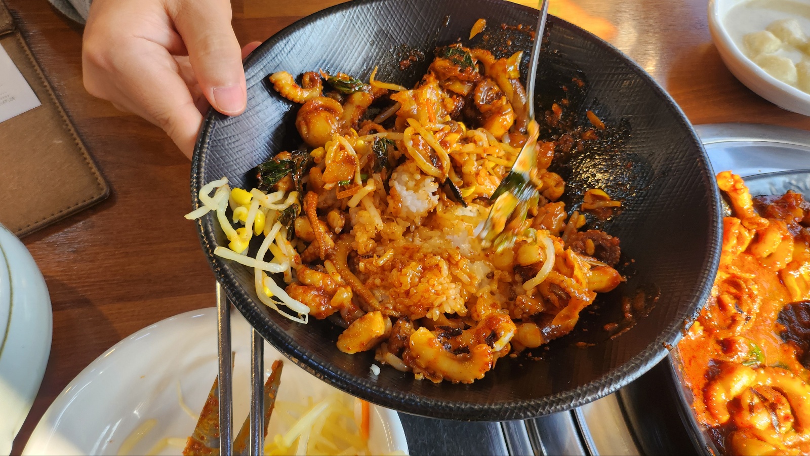 쭈꾸미볶음을 반찬으로 먹었는데 밥에 비벼먹다보면 쭈꾸미의 본연의 맛을 좀 덜 느끼게 되는것같아요