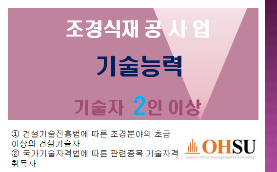 오늘은 단종면허 조경식재공사면허에 대해서 취득하기위해 갖춰야하는 요건들을 말씀드려보겠습니다